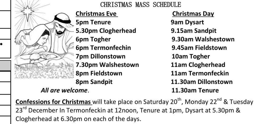 In the days just before Christmas, there will also be opportunities for Confession on Monday 22nd and Tuesday 23rd December. These moments aren’t about pressure or perfection — they’re simply a chance to clear the head and heart, to let go of what weighs heavy, and to step into Christmas a little lighter and freer.